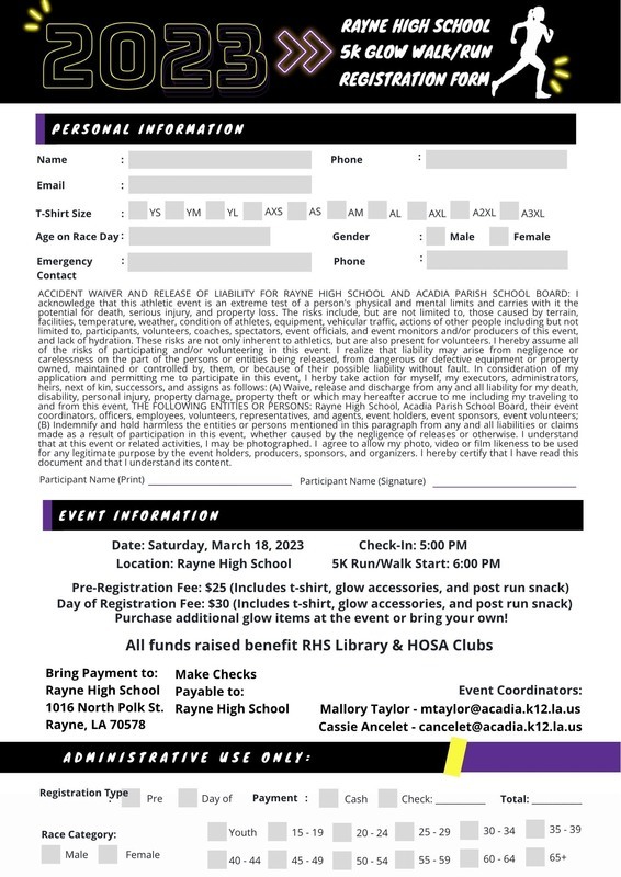 #RHS5KGlowRun #RHSHOSA #RayneHigh #RHSLibraryClub #GeauxWolves #WolfPride #Fundraiser