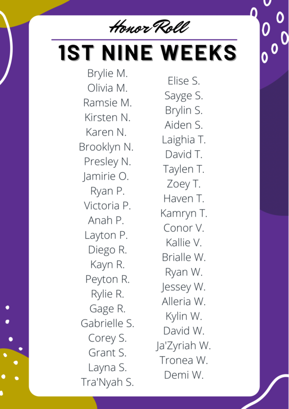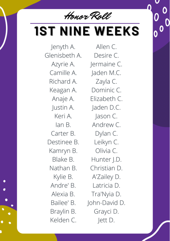 21-22 1st 9 Weeks Principal's List and Honor Roll Recipients Named
