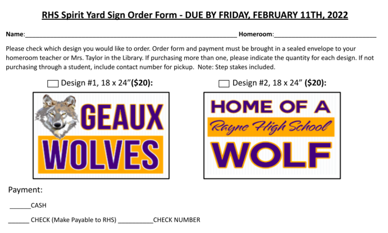 See the attached order form for more details! Completed order forms and money are due by Friday, February 11th!