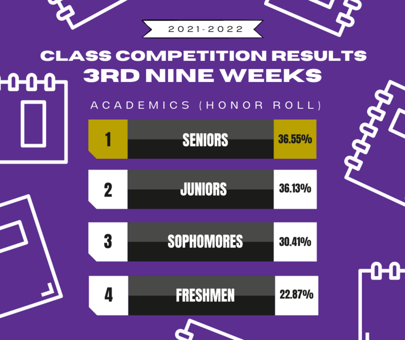 Juniors remain in the lead following the conclusion of the 3rd nine weeks.