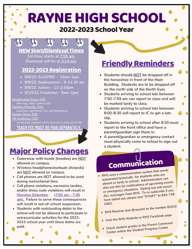There was a misprint in the local paper regarding RHS Registration dates and times. The information that has been published by RHS on our website, Facebook page, and sent out via our automated system over the past month has the correct dates and times.