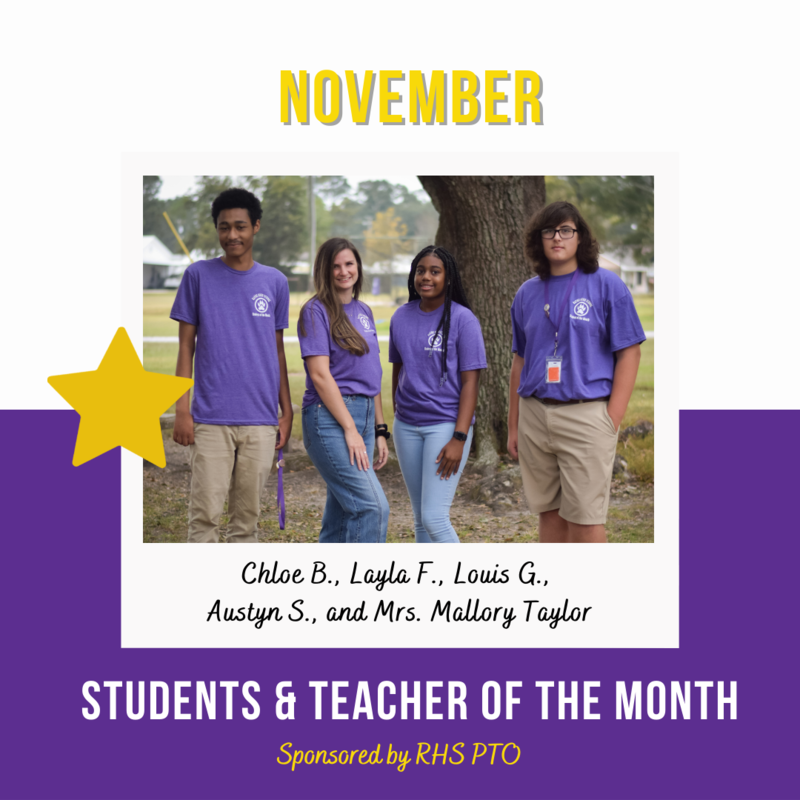 Students and Teachers of the Month are sponsored by the Rayne High School PTO.
